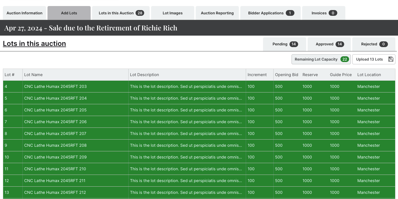 Once the spreadsheet full of lots has been added to your auction admin system, you can verify the details before you save them.
